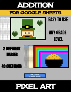 St. Patrick's Day - Digital Pixel Art, Magic Reveal - ADDITION - Google Sheets