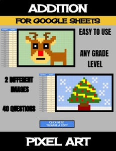 Christmas - Digital Pixel Art, Magic Reveal - ADDITION - Google Sheets