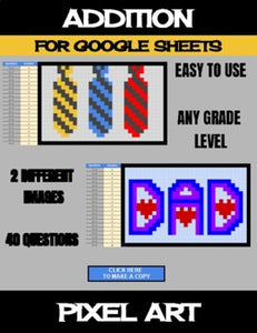 Father's Day - Digital Pixel Art, Magic Reveal - ADDITION - Google Sheets