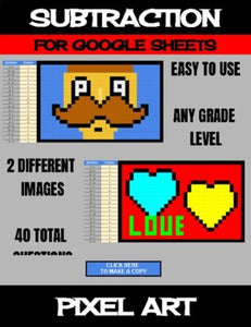 Father's Day - Digital Pixel Art, Magic Reveal - SUBTRACTION - Google Sheets